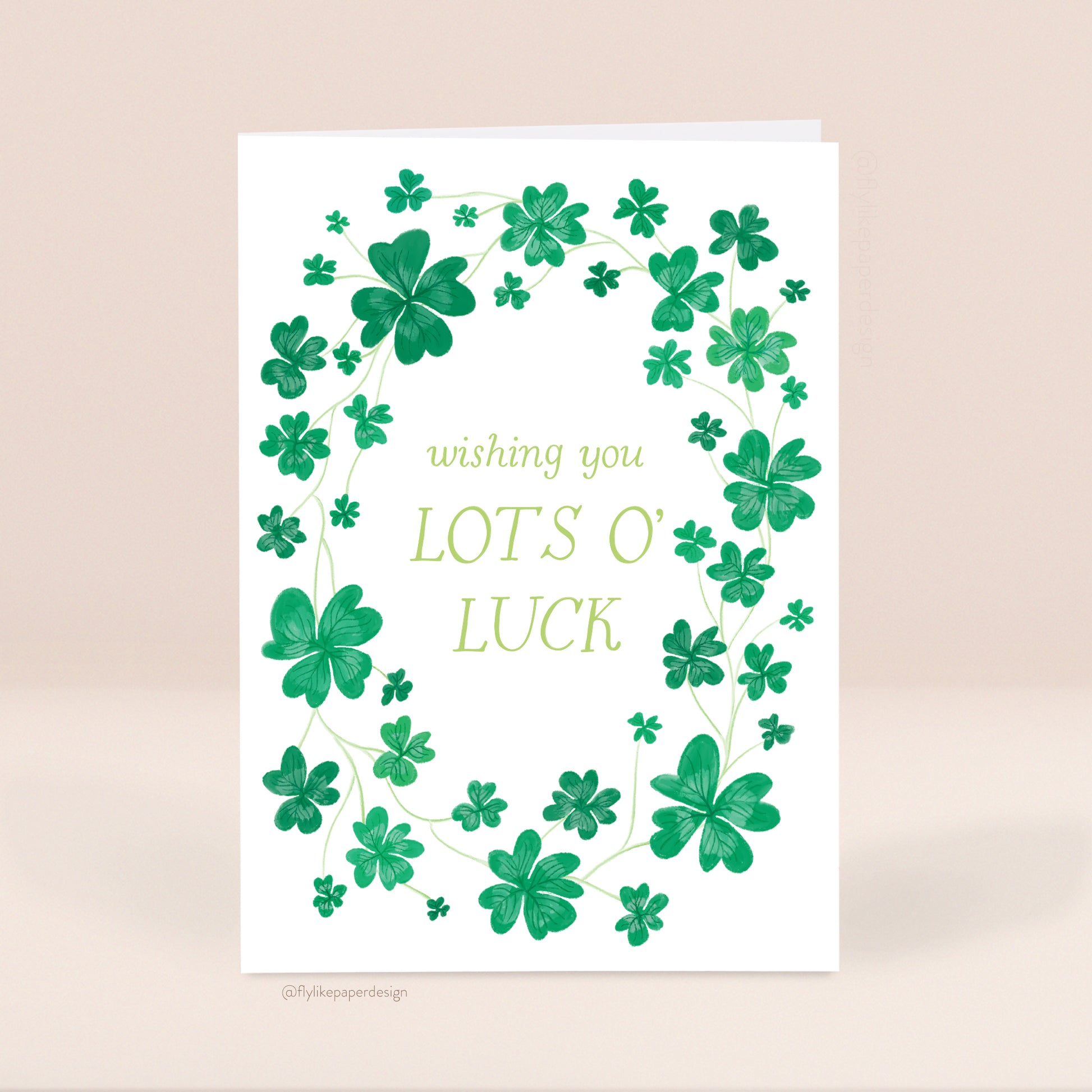 Celebrate St. Patrick's Day with this lucky card featuring green shamrock clovers.